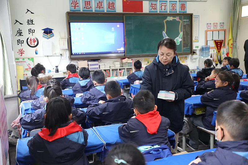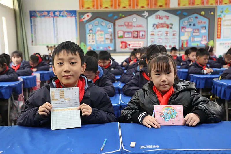 教室里,孩子们一拿到自己的专属“阅读存折”,就在老师的指导下一笔一画在存折上写下开户行、户主等信息,正式开启了书香之旅。