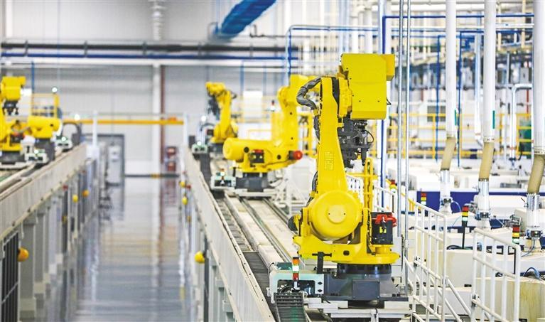 西安法士特高智新科技有限公司的生产车间内,工业机器人正在作业(资料照片)。 本报记者 许奥博摄