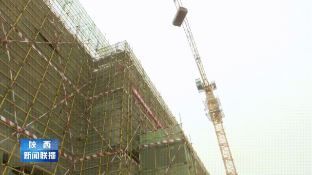 走进杨陵区五泉标准化厂房建设项目工地,一栋标准化厂房已经封顶,建设现场塔吊高悬、机械轰鸣,工人们正在紧张的进行外屋面施工。
