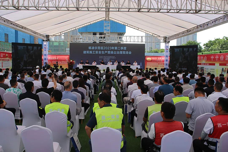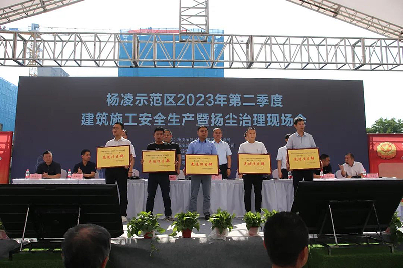 6月15日上午,杨凌示范区住建部门在示范区医院自贸院区项目施工现场组织召开了2023年第二季度建筑施工安全生产暨扬尘治理现场会。