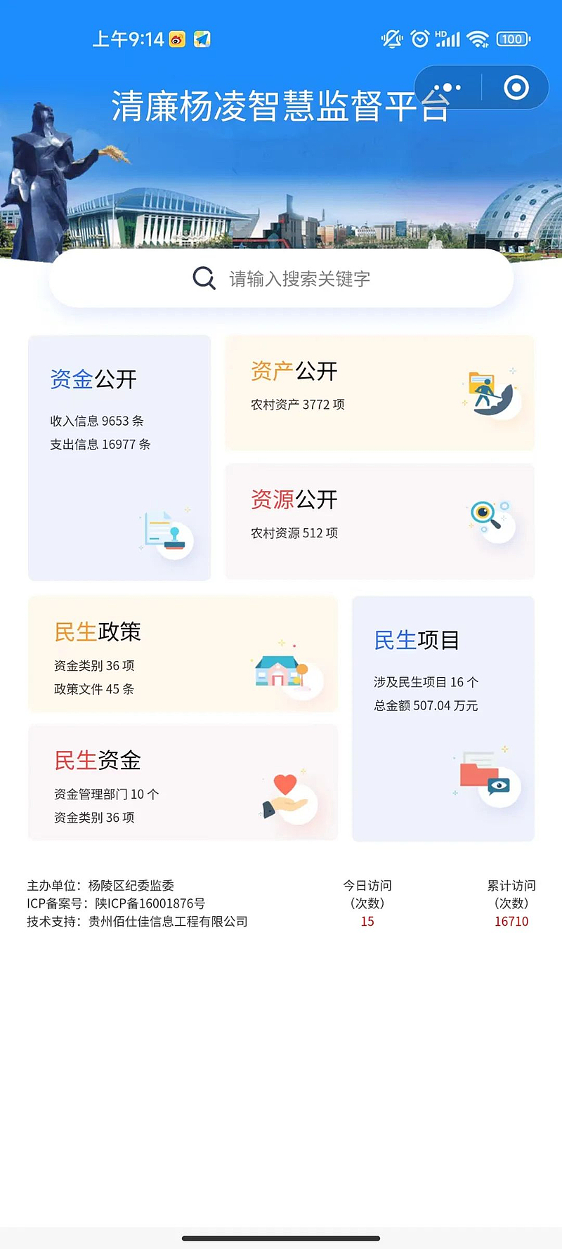 清廉杨凌智慧监督平台对惠民惠农有关数据进行公开,让村务政务更加透明,不断推动基层党风廉政建设。
