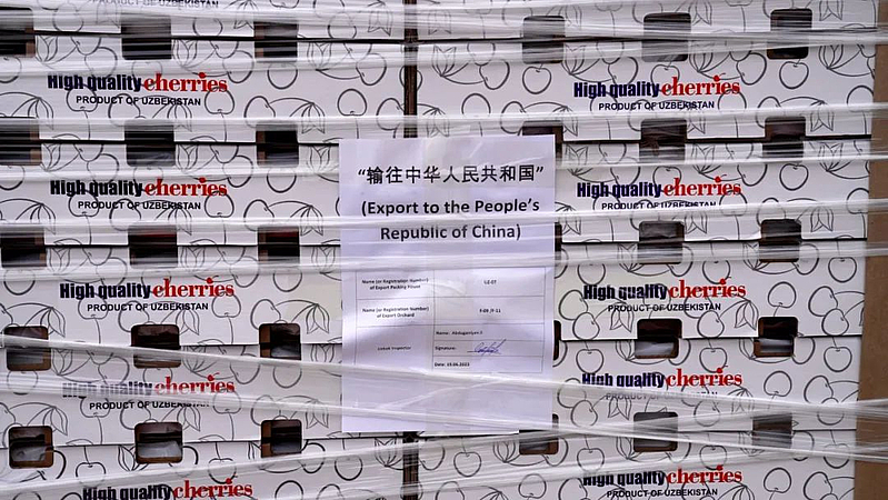 海外直采、空运直达。6月20日下午,一批产自乌兹别克斯坦的车厘子,搭乘圆通航空飞机,由乌兹别克斯坦首都塔什干运抵西安机场。这是杨凌示范区贯彻落实中国-中亚峰会成果的重要举措,也是杨凌现代农业国际合作有限公司首次包机进口中亚水果,为扩大示范区与中亚国家农产品贸易打开了新渠道。