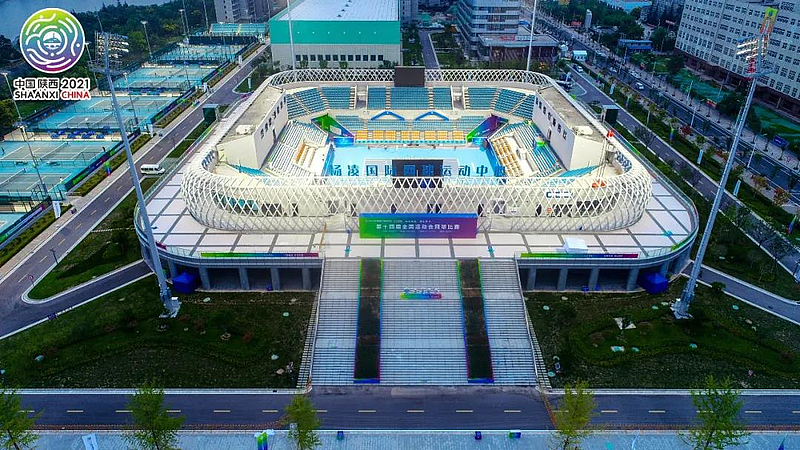 陕西省杨凌网球运动中心是十四运会陕西省12个新建场馆之一,也是西北地区规模最大、功能设施最全的综合性网球运动中心,占地面积143亩,内有一个拥有4129个座位的中央球场、一个拥有1200个座位的副主场、10片室外标准比赛场地、4片室外标准训练场地和一个室内网球馆。
