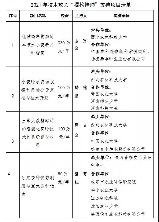 近日,记者从杨凌种业创新中心了解到,2021年“揭榜挂帅”技术攻关项目揭晓。