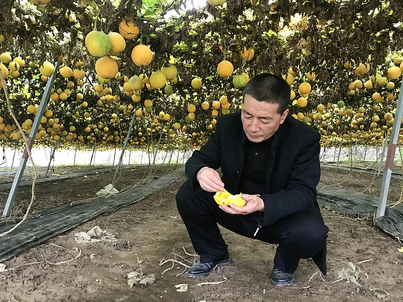“2015年去安徽旅游,我第一次吃到瓜蒌子,又好吃又没见过,了解得知这是安徽农科院研发的瓜蒌品种,简单省人力,全身都是宝,我就有了把瓜蒌引进家乡的想法。”