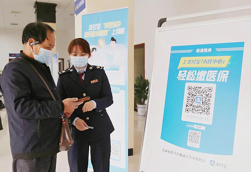 11月1日上午,在税务干部的指导下,通过手机上安装的支付宝渠道,杨陵区李台街道办阳光社区居民马成顺利缴纳了2022年度城乡居民基本医疗保险费320元。“以前缴医保,需要到社区交现金,还要进行登记,现在直接通过手机缴费,而且开通了微信、支付宝等多种渠道,真方便!”马成高兴地说。