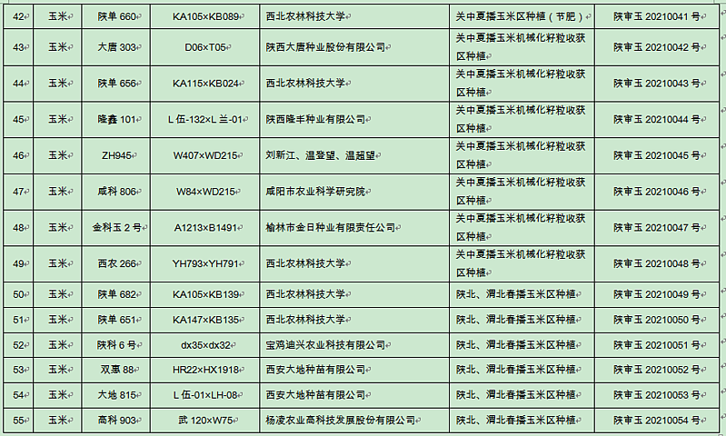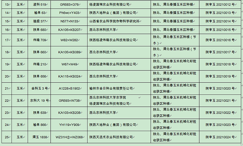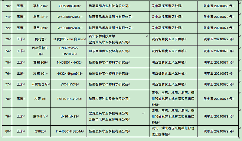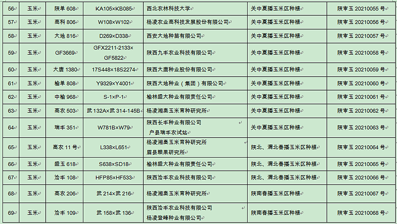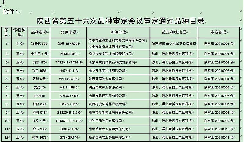 近日,陕西省农业农村厅关于公布第五十六次农作物品种审定结果的通知,明确共审定通过了水稻、玉米品种80个,杨凌占34个, 以玉米品种为主。其中,西北农林科技大学15个,其他区内企业(研究所)19个。