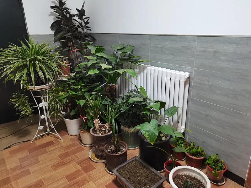12月15日,记者在曹新庄村村民曹拴国家里看到:空调、电暖气,电热毯等取暖设备一应俱全,几盆绿植生机盎然,为家里增添几分别致。