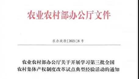 近日,农业农村部办公厅发布关于开展学习第三批全国农村集体产权制度改革试点典型经验活动的通知。河北省邢台市等17个地市和天津市西青区等43个县(市、区)作为第三批全国农村集体产权制度改革试点典型经验交流单位供各地学习借鉴。其中陕西省杨凌示范区杨陵区在列。