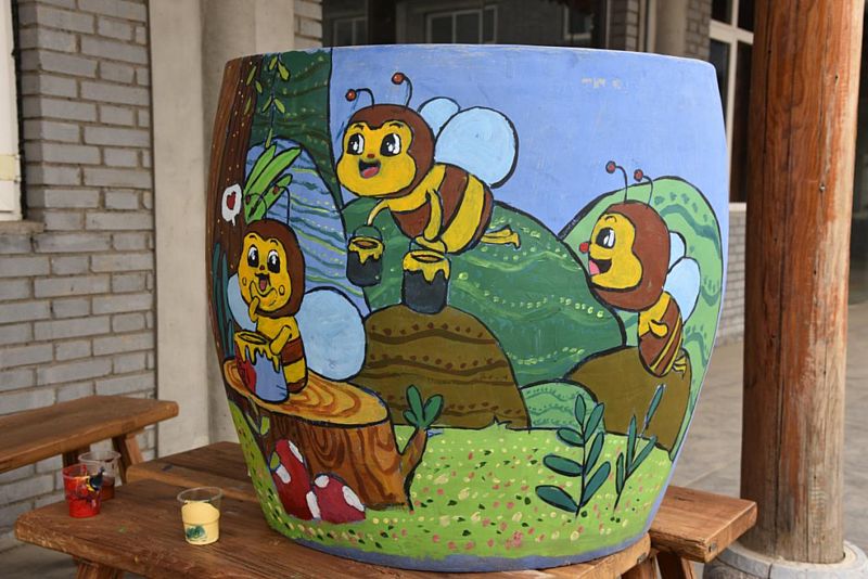 作为创意涂鸦的提议者,李冰对此颇有研究:“这批花钵共有17个,是我专门‘淘’回来进行二次创作的,因为我在外地考察学习时发现,人们对于新兴事物——涂鸦接受度、满意度极高。借助新事物,我们计划在发展好村集体经济的同时,也做好文化旅游的‘文章’,丰富村民和游客的文化生活与精神世界,为王上村‘增色添彩’。”