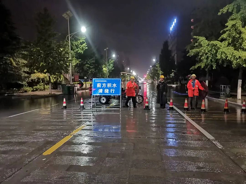暴雨中,城管部门进一步加强五胡路、新桥路、东环线、高干渠路等易涝点的值守及排涝工作,及时清掏雨水口、雨水篦内的垃圾杂物,将部分排水口井盖掀开进行人工助排,确保排水畅通,防止因堵塞造成积水,并对积水路段进行临时封闭,避免群众生命财产安全受到伤害。截至当日23点12分,城区除东环南路积水封路外,五胡路、新桥路、高干渠路积水已退道路畅通,其余道路立交一切正常。