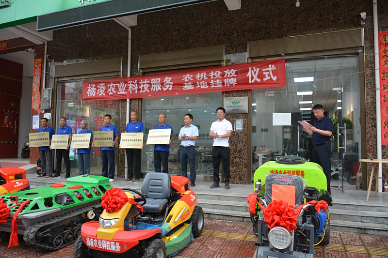 为进一步助力乡村振兴战略实施,共同推进农业社会化服务体系建设、提升陕西地区果园管理的科学化、智能化水平和生产效率,履行国企职责。7月14日,由杨凌农科集团有限公司与中化现代农业(甘肃)有限公司共同举办的——杨凌农业科技社会化服务“农机装备投放暨服务基地挂牌”仪式在中化现代农业绛帐服务中心举行,这也标志着杨凌农科集团与中化农业联手推进农业社会化服务工作正式开启。