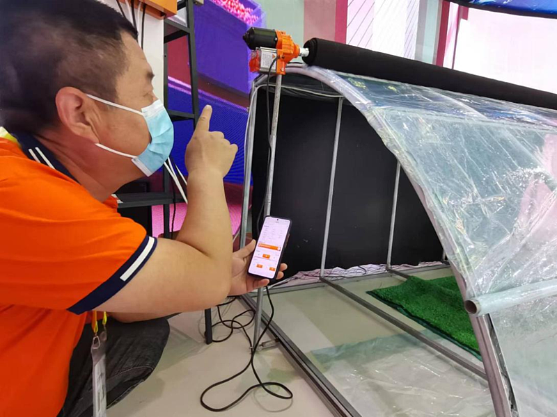 “比如我现在想要打开01号风帘,我只用按一下手机上的开关,01号风帘就打开了。”话音刚落,风帘“乖乖”转动起来。“传统农业需要人工在现场看,还要现场设置温度计,现在农户在手机APP上,就可以监控到这些信息,并且自动控制,联动联控,从而控制棚内温度,包括放风的效果。”朱晓磊说。