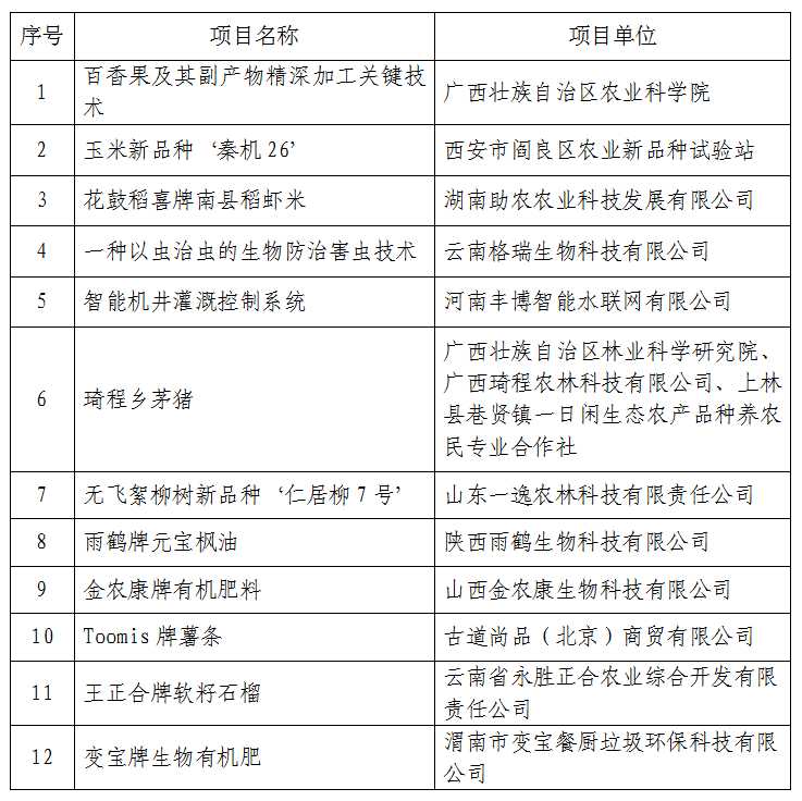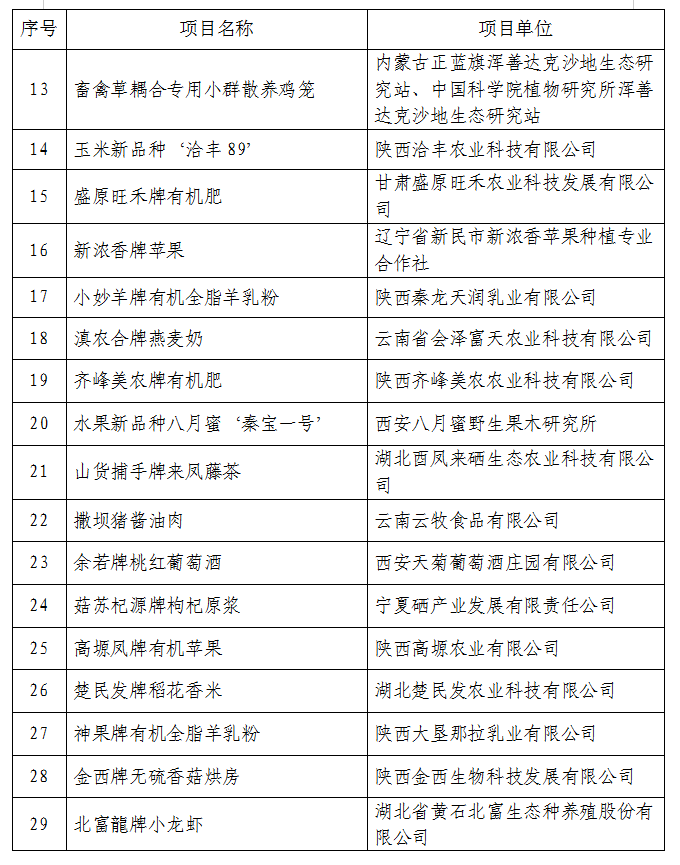 以“创新·合作与粮食安全”为主题的第29届杨凌农高会于9月15日至19日成功举办。为期5天的会期里,集中展览展示了国内外农业科技创新的新技术、新产品和示范推广乡村振兴的新典型、新经验。经前期申报和农高会组委会审定,决定授予30项农业科技项目“后稷特别奖”、授予140项农业科技项目“后稷奖”。