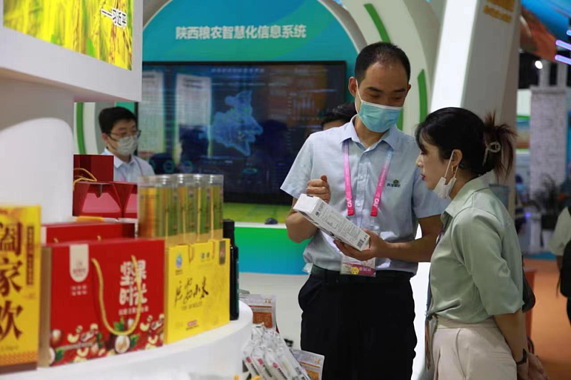 在第29届农高会D馆(农业高新技术成果展),陕西粮农集团以“保障粮食安全、服务乡村振兴、引领产业发展”为主题,携所属种业、牧业、农业、粮油加工等领域相关企业参展,重点展示了“从种子到餐桌”全产业链的新成果、新技术、新产品。