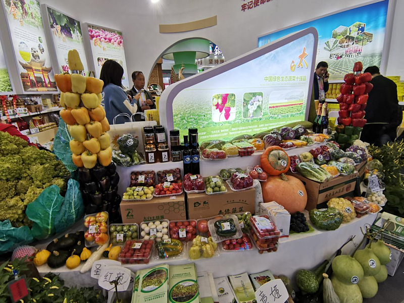 图为:农高会期间各地展团展出的部分农产品。