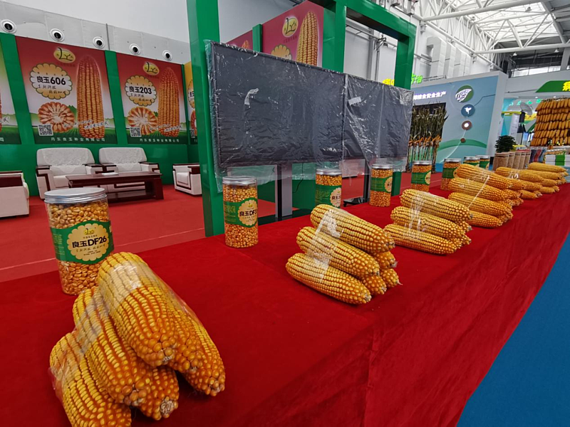 图为:农高会期间展出的玉米新品种。