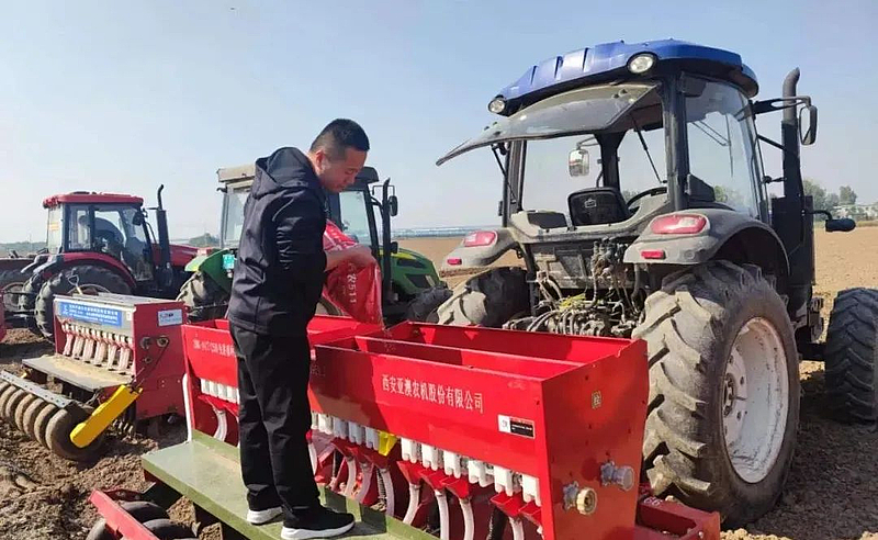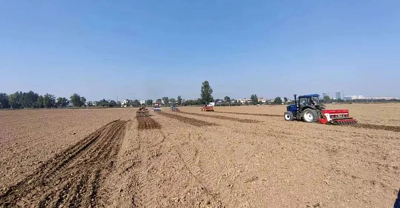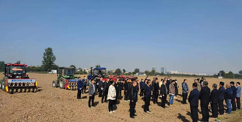 10月11日下午,位于杨陵区揉谷镇石家村南的农田里,五辆播种机一字排开,随着一阵轰鸣声响起,2022年杨凌万亩主要作物良种试验示范田秋种正式开播。