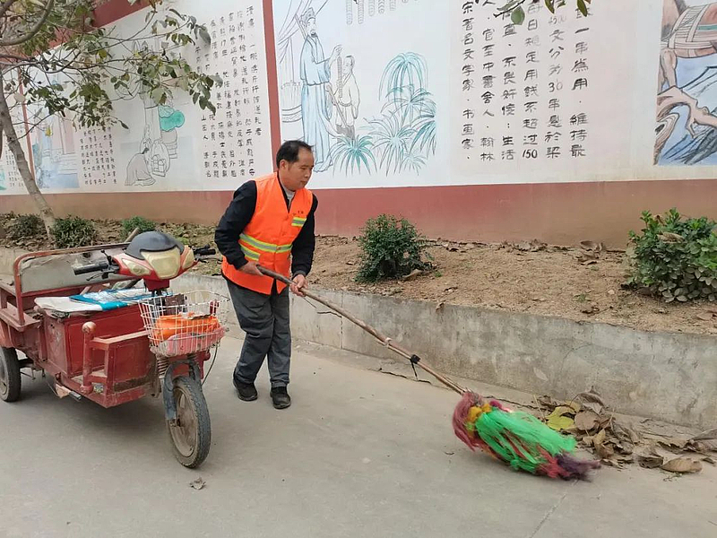 凭借一把扫帚、一个畚箕和一辆三轮车,崔浩浩“扫村”十余载,美化了村庄的角角落落。他说:“因为身体有残疾,出门打工也不方便,幸好村上安排了一个打扫卫生的工作,让我每个月都有工资拿,现在的我过的很满足。”