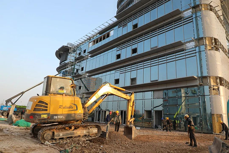 一进入综合保税区生活配套服务区项目施工现场,王斌就立刻进入工作状态,关于现场工作事无巨细进行了解,现场数台挖掘机、推土机、工程车正在紧张作业,工人穿梭其中,现场一派火热气氛。