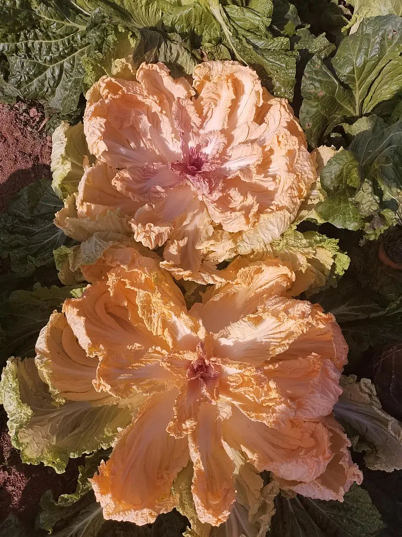 这种紫橙色大白菜外观与普通大白菜无异,但从中间竖切后会看到紫心和层层包裹的橙衣,令人十分新奇。2020年,随着全球首个紫橙色大白菜种质材料的问世,其填补了国内外紫橙色大白菜种质缺乏的空白。