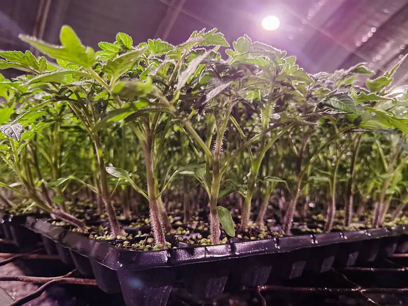 “最近有一批来自武功的订单,是6000株西红柿苗,我们已经培育得差不多了,就等到20号前后赶紧把这批货发过去。”记者在育苗棚见到李建辉时,他正忙着打开补光灯,给棚内的西红柿苗补光。