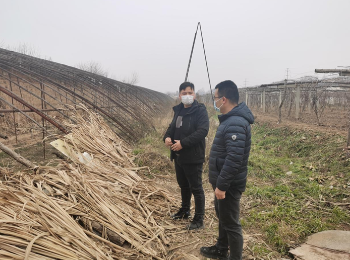 1月4日,记者见到李创波时,他正与大寨街道办副主任赵洪飞商讨在村上撂荒大棚里种植蓝莓的事宜。