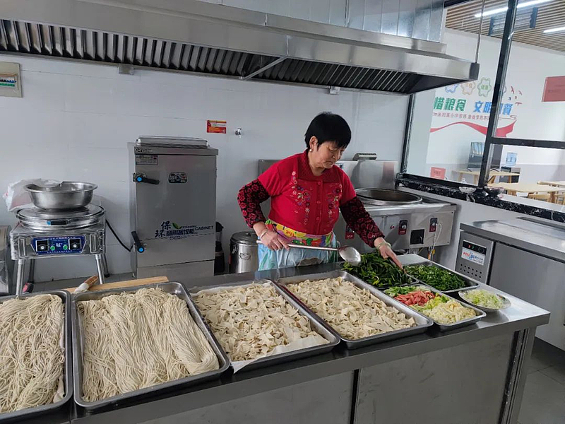 临近中午,在五泉小区日间照料中心,工作人员张冬冬正在厨房内忙碌着,胡萝卜、芹菜、菠菜、面条……色彩不同、营养搭配的食材已经料理就绪,随时可为老人们准备一顿可口的午餐。