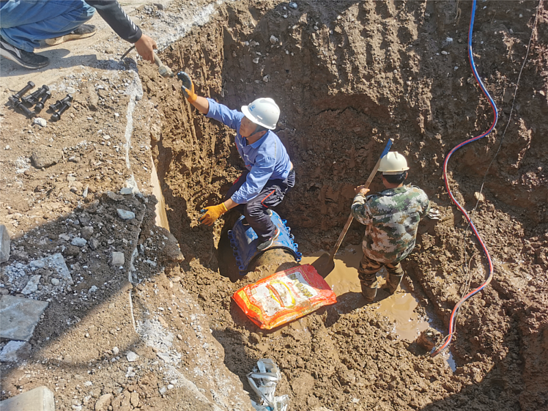 3月20日,工作人员在巡线检修中发现城南路管道阀门到达使用年限,出现渗水情况。当晚11点30分,抢修人员进驻抢修现场,在3米左右深坑中开始了抢修作业。