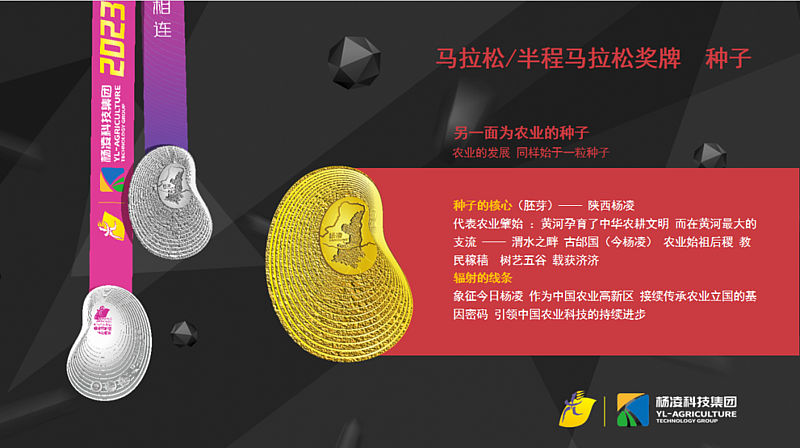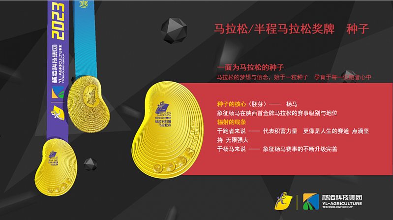 一眼杨凌、千年农耕。马拉松、半程马拉松完赛奖牌:“种子”。