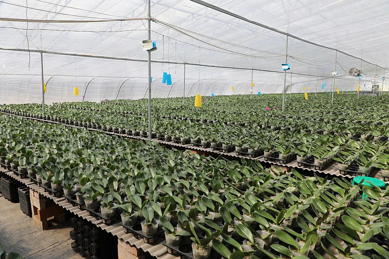 “杨凌当地的大棚很多,但都是普通的棚体。我们公司针对百木森苗木花卉有限公司培育的蝴蝶兰,‘量身’为其打造了一款新型的棚体。”李晓峰指着正在建设的大棚告诉记者,这款棚体不仅可以通过顶部通风,同时棚体两端还设立了风机,夏天温度过高时可以快速降温。温度过低时,也可以通过两层的棚体进行保温,一举多得,确保蝴蝶兰产量与品质“双提升”。
