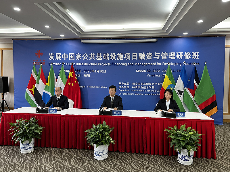 4月10日,由中华人民共和国商务部主办、杨凌示范区承办的发展中国家公共基础设施项目融资与管理研修班在杨凌结业。示范区管委会、杨凌职业技术学院等相关单位领导出席结业典礼,埃塞俄比亚、塞拉利昂、莱索托、南非、南苏丹、苏丹、苏里南、赞比亚等8个国家28位学员线上参加结业典礼。