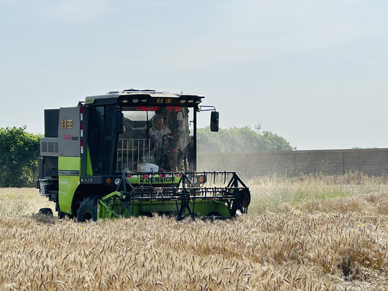 6月9日上午,在位于杨陵区揉谷镇秦丰村的禾迪德耘种业小麦原种基地里,联合收割机在金黄的麦浪中来回穿梭,机器过后留下一排排整齐的麦茬,切割、剥壳、脱粒、麦秆还田......在农机驾驶员的操作下一气呵成,饱满金黄的麦粒从收割机倾泻而下倒入小车中。
