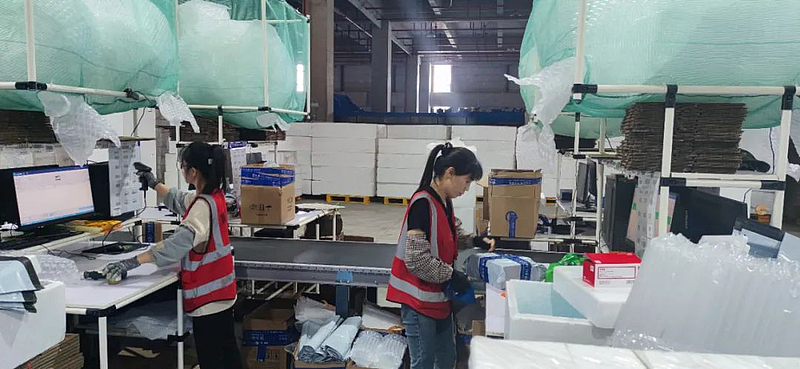 7月19日,在网营物联杨凌供应链中心陕西乐淘农业科技有限公司的厂房里,工人们正忙着处理订单,熟练地分拣、打包、装箱……一片火热景象。