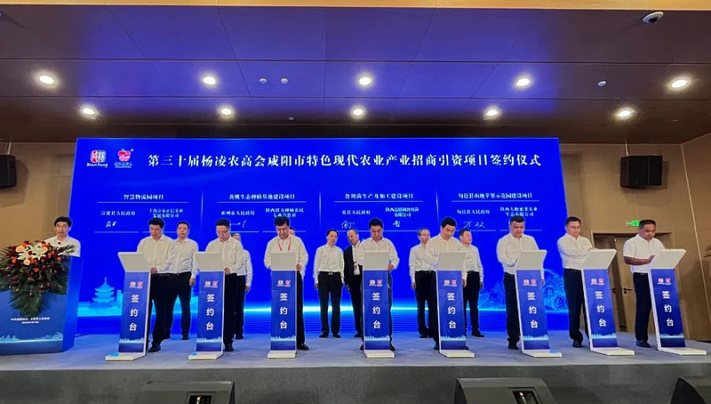 9月19日,第30届杨凌农高会咸阳市特色现代农业产业招商引资项目签约活动在杨凌上合组织现代化农业交流中心举办。此次活动现场集中签约项目29个,签约金额共计143.32亿元。涉及咸阳市13个县区,签约项目主要包含8条产业链延链补链、土特产、预制菜以及农产品加工、设施农业、大宗农产品贸易、冷链仓储物流、农文旅融合等领域,其中投资额最大项目65亿元。
