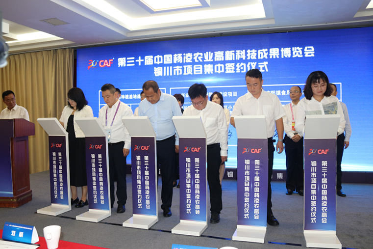 9月21日,第30届杨凌农高会铜川市项目集中签约仪式在杨凌示范区举行。本次集中签约共计18个项目,总投资13.14亿元。其中合同项目14个、涉及金额9.94亿元,协议项目4个、涉及金额3.2亿元。签约项目涉及现代种业、农产品加工等多个领域。