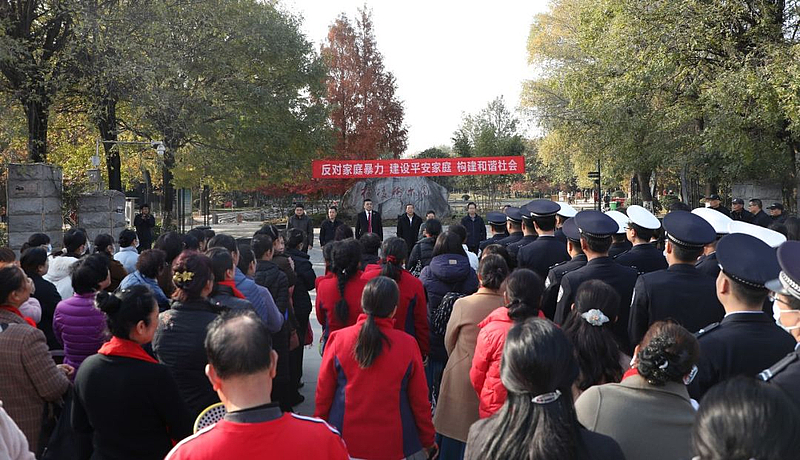 11月25日是“国际反家庭暴力日”。11月24日,杨凌示范区党工委政法委、示范区公安局、示范区妇联联合示范区维护妇女儿童权益联席会议成员单位在树木园举办“11·25反家庭暴力日”主题普法宣传活动。示范区党工委委员、政法委书记桂党会讲话并宣布活动启动。