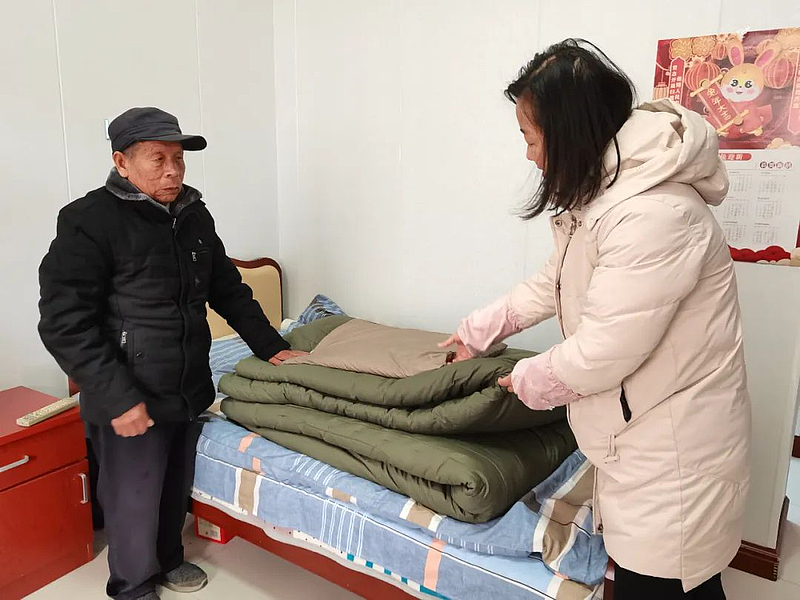 “以前的被褥用了几年了,时间长了也不是很暖和了,民政局和我们就提前采购了全新的棉花被褥和棉衣棉鞋,让一老一小温暖过冬。”符亚青说到。