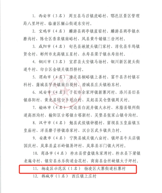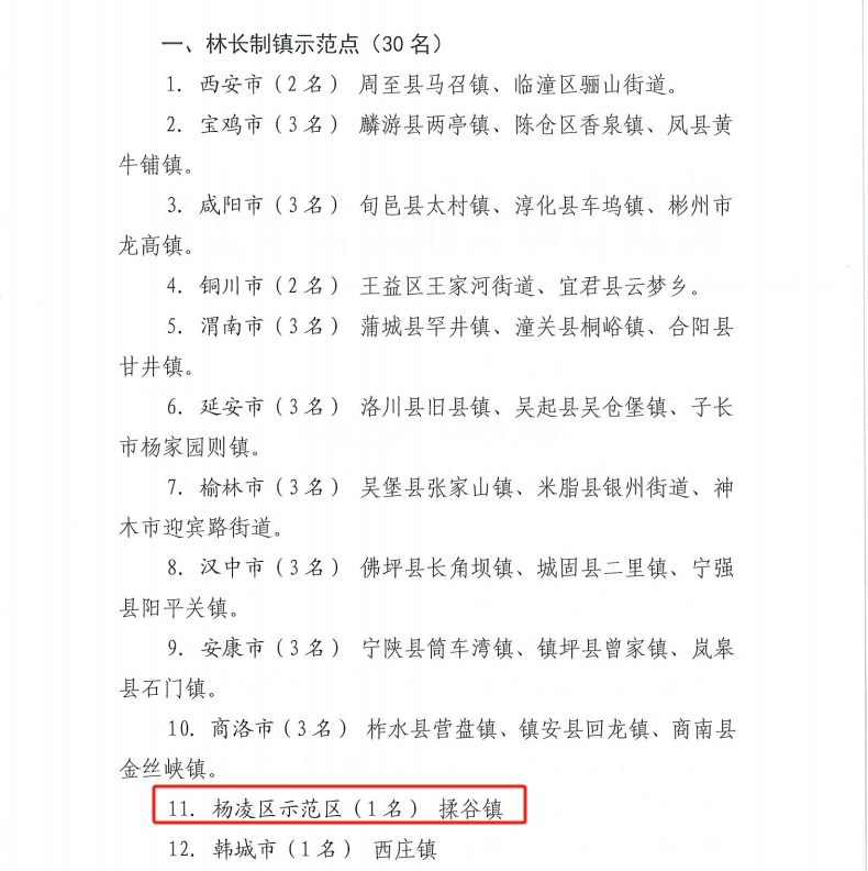 日前,陕西省林长制办公室印发《关于林长制示范镇(村)评选结果的通报》(陕林办发〔2024〕1号),其中,杨陵区揉谷镇获评全省林长制示范镇,杨陵区大寨街道办杜寨村获评全省林长制示范村。