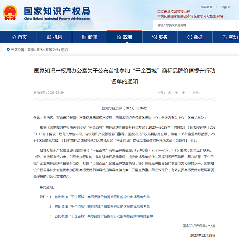 据了解,“千企百城”商标品牌价值提升行动是落实知识产权强国、强省建设的重要举措,是深入实施商标品牌战略的具体行动,旨在通过企业商标品牌价值提升专项行动、商标品牌优势区域创建专项行动、商标品牌建设服务指导专项行动“三大行动”促进企业和区域商标品牌价值提升,加快推动中国产品向中国品牌转变。(综合报道)
