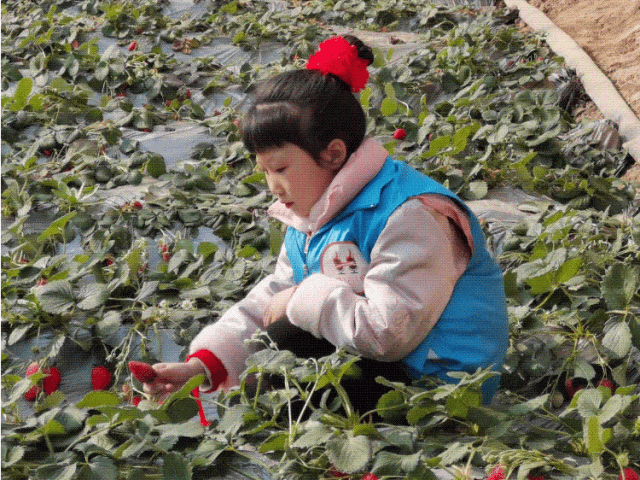 活动现场,杨凌文旅的6位小小体验官们来到位于杨扶路的草莓大棚内自采新鲜草莓。