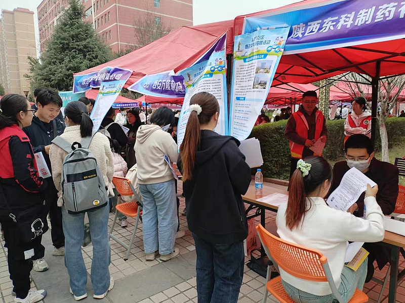 活动前期,示范区人社局结合当地优势产业,主动对接省内相关高校单位,广泛收集生物医药类企业信息,积极开展“走出去”招聘活动,于3月23日,组织陕西东科制药有限责任公司、西安万隆制药股份有限公司等13家生物医药类重点企业单位,赴外参加陕西中医药大学2024年春季校园双选会,提供岗位303个。