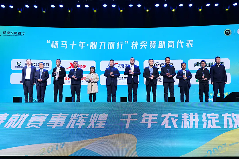 本届“杨马”赞助商代表杨凌农商银行、特步、大秦之水、顺丰快递、东科制药、雪花中国以及历届“杨马”总冠名代表本香集团、广通地产、美畅、杨凌科技集团获得“杨马十年·鼎力而行”奖项。