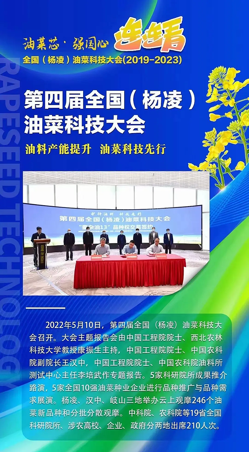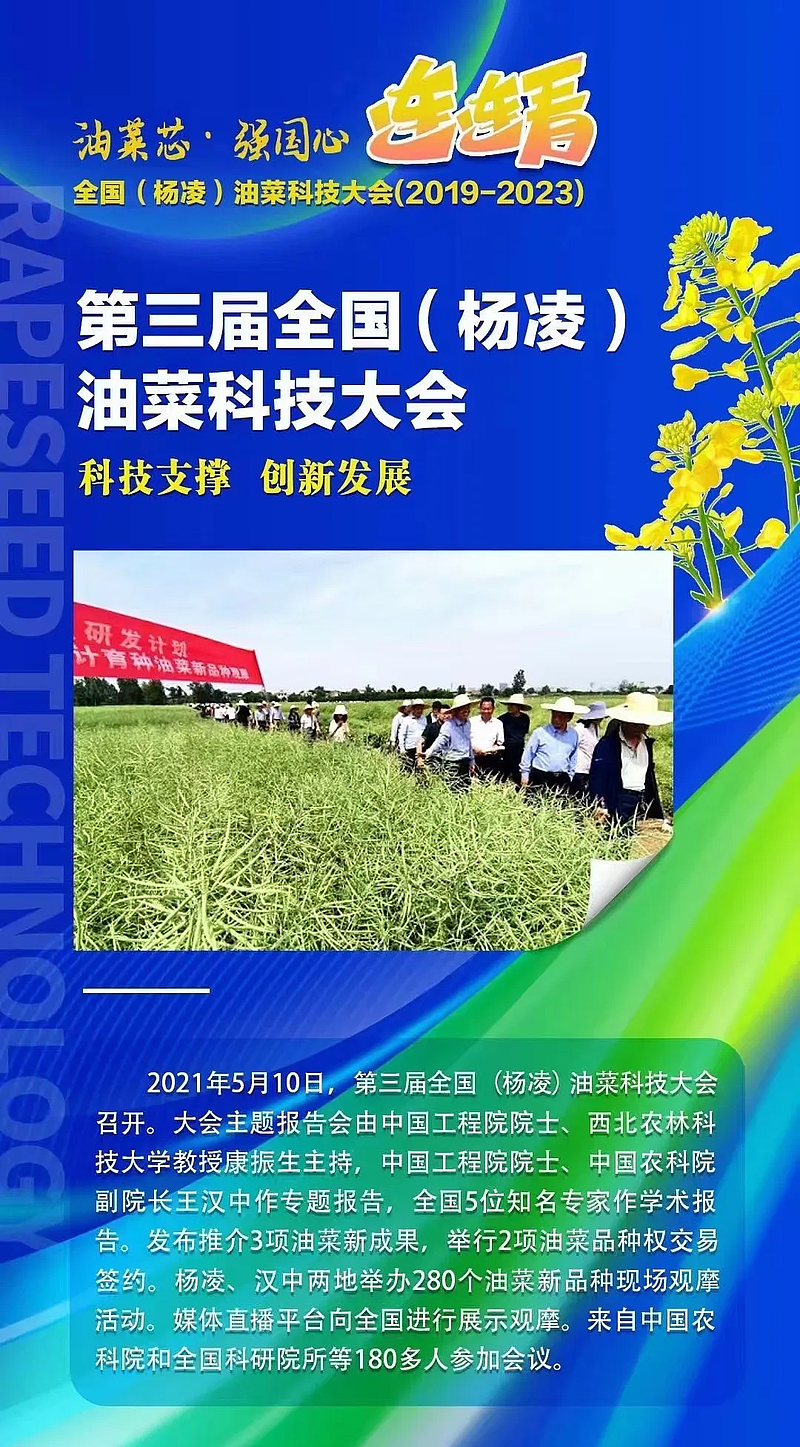 5月9日-10日,第六届全国(杨凌)油菜科技大会,将在杨凌召开。