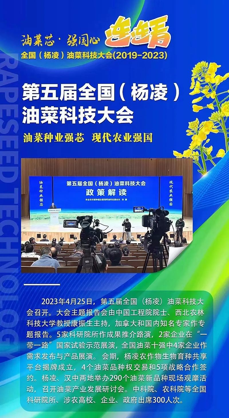 近年来,杨凌示范区以打造中国(旱区)种业硅谷为发展目标,全方位加大种业扶持力度,先后组建了国家(杨凌)旱区植物品种权交易中心、杨凌种业创新中心等机构。依托秦创原创新驱动平台农业板块,积极整合西北农林科技大学、陕西省杂交油菜研究中心等科研院所种业科技创新资源,持续搭建科企对接融合平台,先后成功举办了五届全国性的油菜科技大会,围绕油菜育种开展技术交流研讨和新品种示范观摩推介活动,有力地促进了油菜产业科技创新和成果转化,为保障国家食用油供给安全发挥了积极作用。