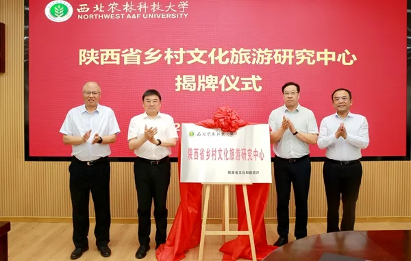 5月28日,陕西省乡村文化旅游研究中心在西北农林科技大学揭牌成立。陕西省人民政府副省长徐明非,西北农林科技大学党委书记黄思光,陕西省人民政府办公厅副主任谢泱,陕西省文化和旅游厅厅长高阳共同为“研究中心”揭牌。