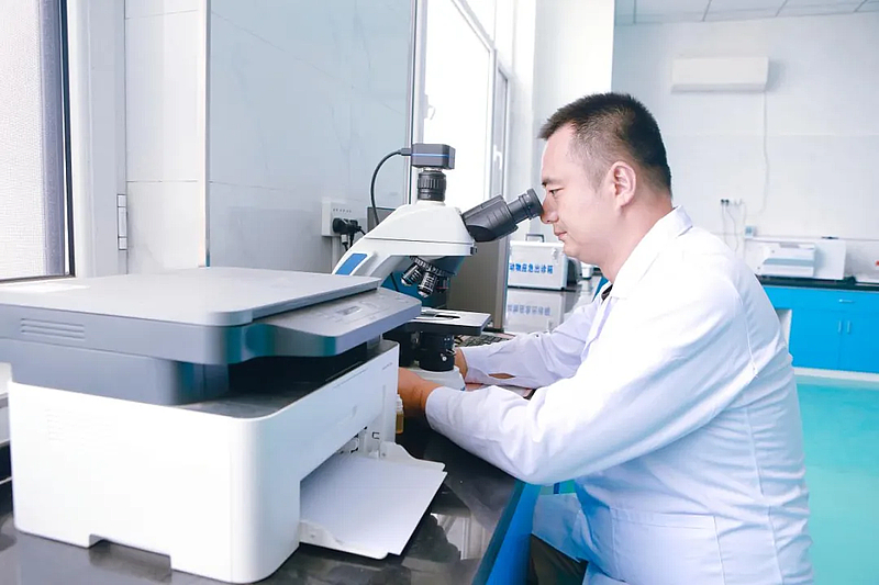 王炳科博士正在对胚胎样品进行镜检