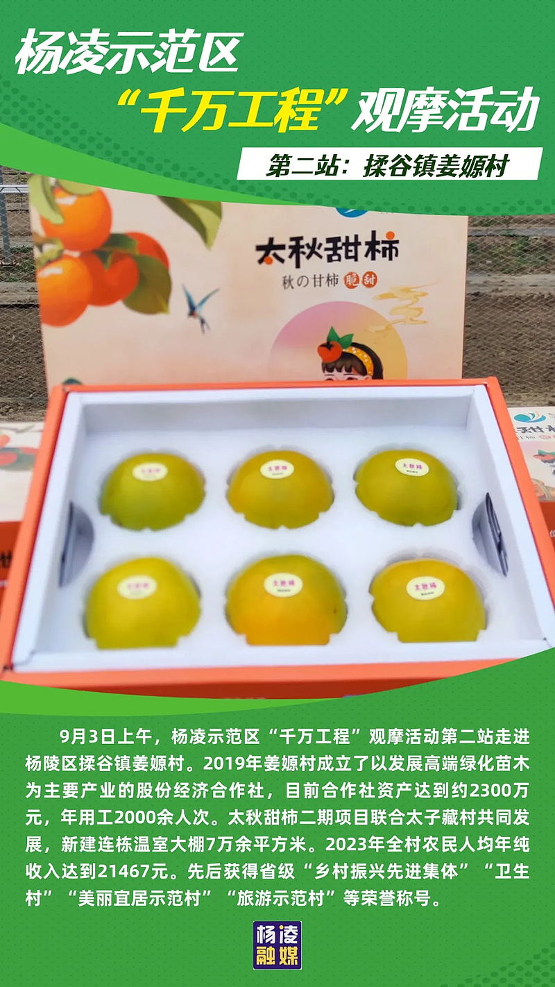 近年来,杨凌示范区深入贯彻习近平总书记重要指示批示精神,全面落实省委省政府安排部署,准确把握“千万工程”精髓要义和理念方法,围绕农业强、农村美、农民富目标,以“千万工程”示范村创建为抓手,坚持抓环境治理提升乡村面貌、抓产业发展提高农民收入、抓乡村治理提高群众幸福感,不断优化人居环境、培壮特色产业、推进乡村治理,乡村全面振兴取得新进展。目前,全区初步认定省级“千万工程”示范村7个,2024年计划创建3个,力争到2027年创建省级示范村20个。