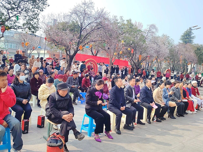 活动现场内容丰富、形式多样,兼顾实用性与趣味性,吸引了众多群众驻足参与。主题文艺汇演率先拉开帷幕,歌舞、快板等群众喜闻乐见的表演形式轮番上演,演员们将普法知识、反邪教宣传巧妙融入节目之中,通俗易懂,赢得现场阵阵掌声。演出中还穿插了《中华人民共和国妇女权益保障法》及平安建设相关法律法规有奖知识竞答环节,现场观众踊跃举手、积极抢答,在轻松愉悦的氛围中,提升了法律意识与自我保护能力。