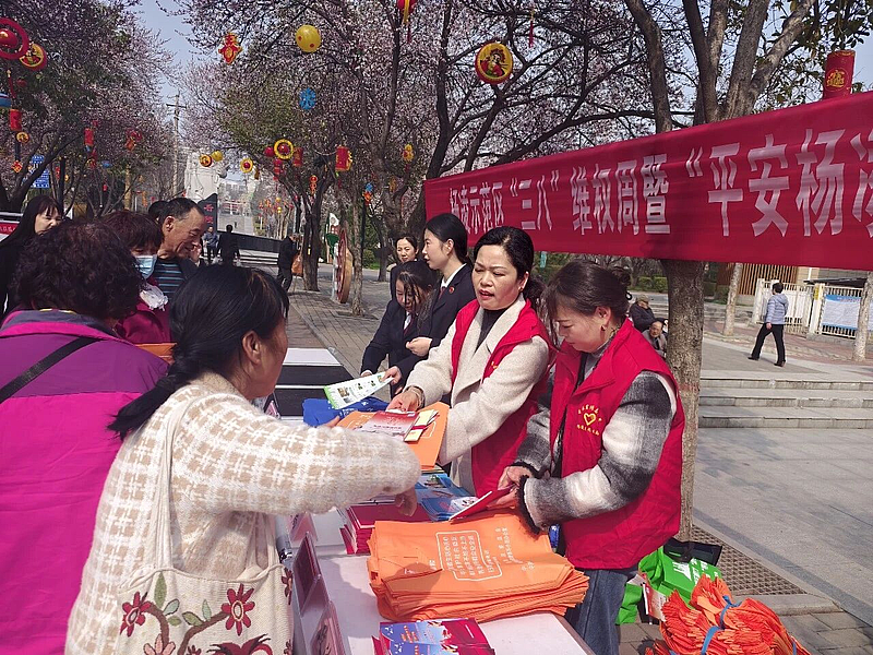 除文艺汇演外,本次活动还精心设置了普法宣传区、法律服务站、健康服务区等多个功能区域,为群众提供全方位、一站式服务。工作人员通过悬挂横幅、发放宣传资料、摆放展板、现场答疑等方式,向过往群众普及妇女权益保护和平安杨凌建设相关法律知识,重点讲解婚姻家庭纠纷、劳动就业权益、反家庭暴力、未成年人保护等群众关心关注的热点问题,有效增强了群众的安全防范意识和依法维权能力。
